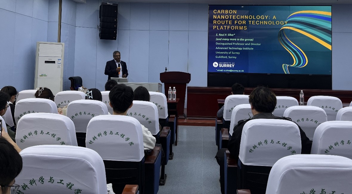 受公司邀请,萨里大学S. Ravi P. Silva院士于11月10号来校访问,并于当日下午为公司师生做学术报告。报告会在williamhill英国官网二楼学术报告厅举行,由公司副经理施德安教授主持,相关教师及研究生参加了报告会。