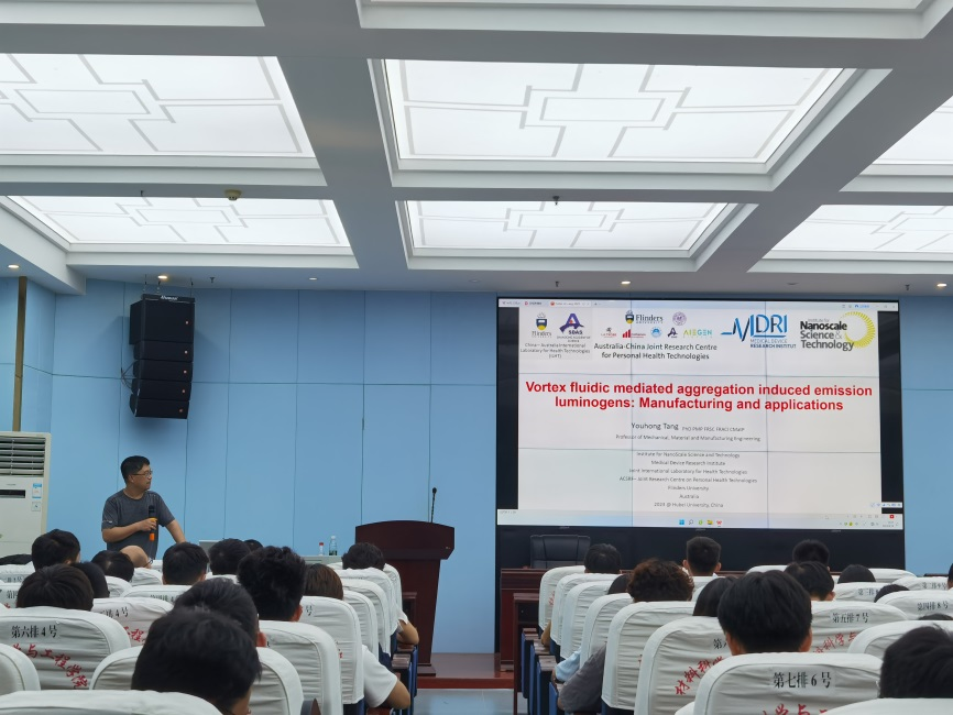 应williamhill英国官网邀请,弗林德斯大学(Flinders University)唐友宏教授莅临公司访问讲学。9月19日上午,唐友宏教授在williamhill英国官网二楼学术报告厅为材院师生作了一场主题为“Vortex fluidic mediated aggregation induced emission luminogens: manufacturing and applications”的学术报告,报告由郭经理主持。