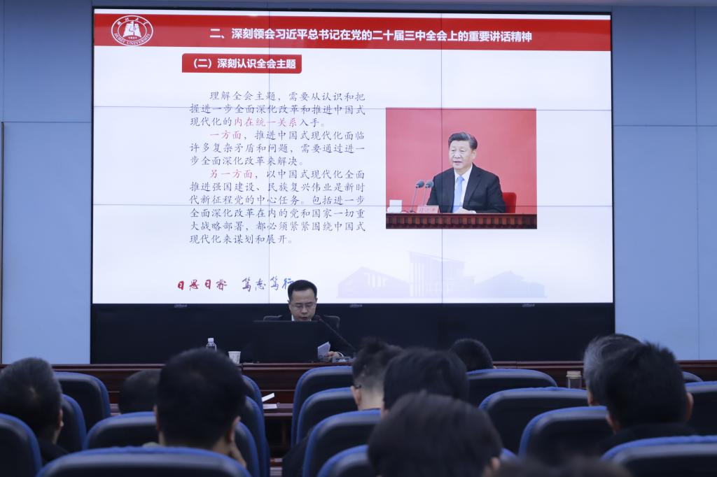 宣讲会上,刘志洪围绕党的二十届三中全会精神,深入浅出地进行了讲解。他首先回顾了全会的基本情况,强调了此次会议在我国全面深化改革进程中的关键地位。随后,他详细阐述了习近平总书记在全会上的重要讲话精神,以及《中共中央关于进一步全面深化改革、推进中国式现代化的决定》的重大意义。