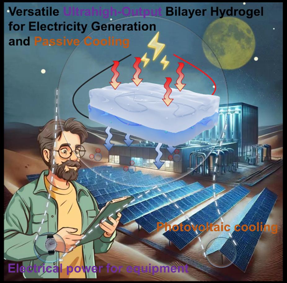 近日,williamhill英国官网仿生摩擦课题组郭志光教授课题组在学术期刊《Advanced Functional Materials》发表了题为《Versatile Ultrahigh-Output Bilayer Hydrogel for Electricity Generation and Passive Cooling》的研究成果,2024级硕士研究生陈国鹏为第一作者,谢尚珍博士和郭志光教授为通讯作者。