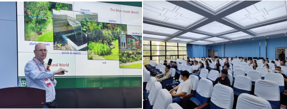 报告结束后,在场师生与Glen McHale教授热烈交流、讨论。Glen McHale教授回答了大家提出的各种问题,并分享了他在界面科学与工程领域的研究经验和心得。报告会拓展了大家对表面润湿性的认识和理解,激发了大家对该领域的兴趣和热情。