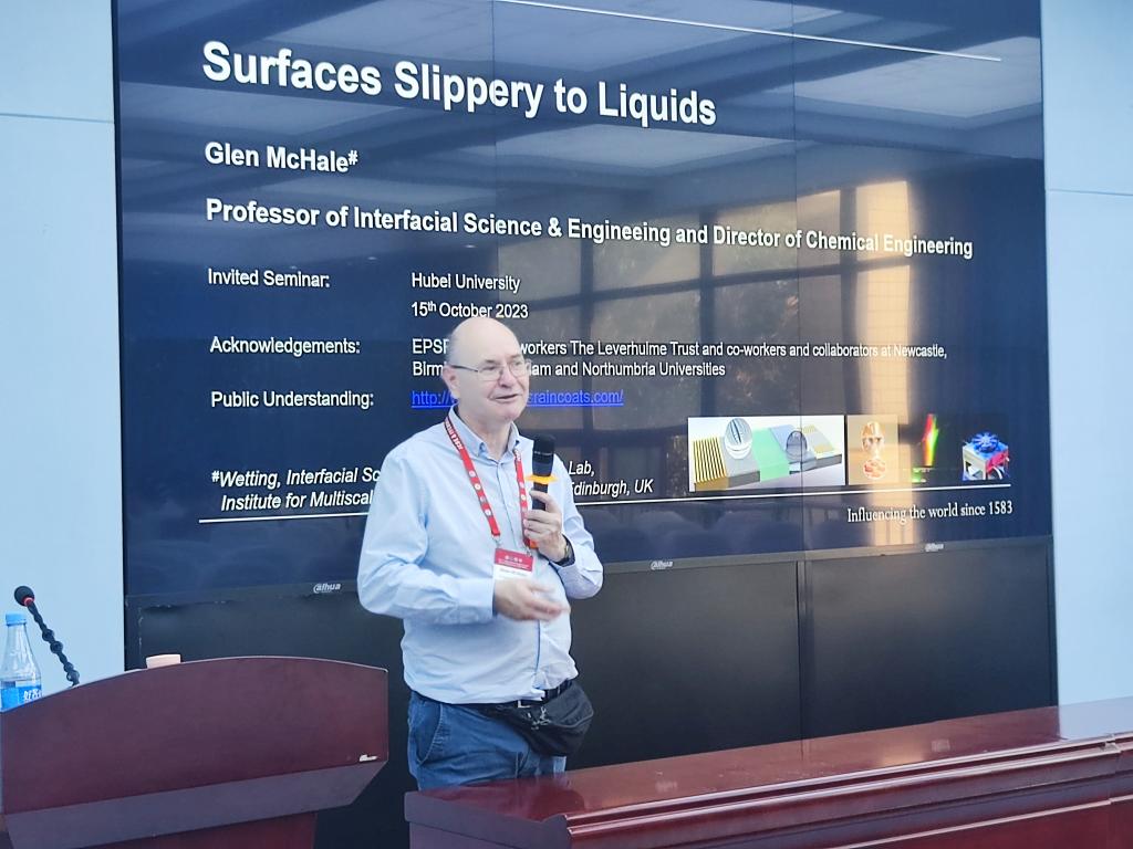 10月15日下午4点,williamhill英国官网举办主题为“Wettability,adhesion and liquid firction”的专题报告。报告人Glen McHale教授是界面科学与工程领域的国际知名专家,也是爱丁堡大学化学工程系主任、多尺度热流体研究所成员。报告会吸引了williamhill英国官网师生的积极参与。