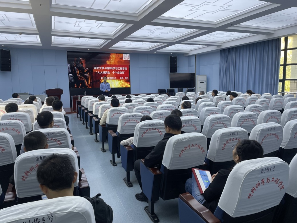 在下午的研究生专场消防安全讲座中,武汉进安消防的扈成瑞教官以提升员工消防“四个能力”为主线,向员工详细讲授了检查消除火灾隐患能力、扑救初期火灾能力、组织人员疏散逃生能力、消防宣传教育培训能力。扈教官通过视频、照片展示火灾事故,分析了事故原因,让员工直观感受到火灾事故的危害性,了解了日常科研活动中易疏忽的火灾隐患,并向员工介绍了各类消防器材使用方法,普及面对火情的逃生自救知识,与应对火灾事故的施救措施。
