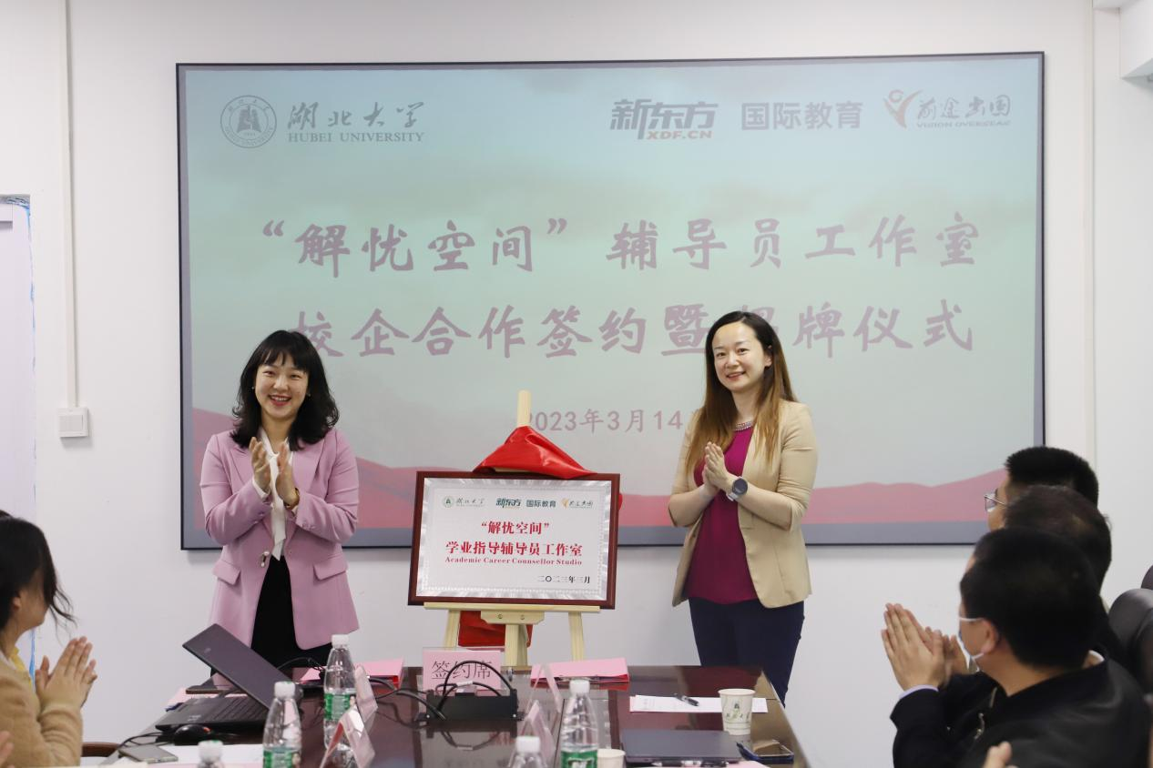 仪式上,郭志光对新东方一行来访表示热烈欢迎,并向来宾详细介绍了公司发展历程、公司专业建设与人才培养情况、“解忧空间”辅导员工作室的定位与工作目标等内容。齐彬对公司的欢迎和信任表示感谢,她表示,与williamhill英国官网williamhill英国官网的合作能充分发挥公司和企业的各自优势,实现资源共享,希望以本次合作为契机,未来广泛开展多领域、多层次的全面合作。随后,校企双方领导共同签订合作协议,甘珣与齐彬共同为“解忧空间”学业指导辅导员工作室揭牌。