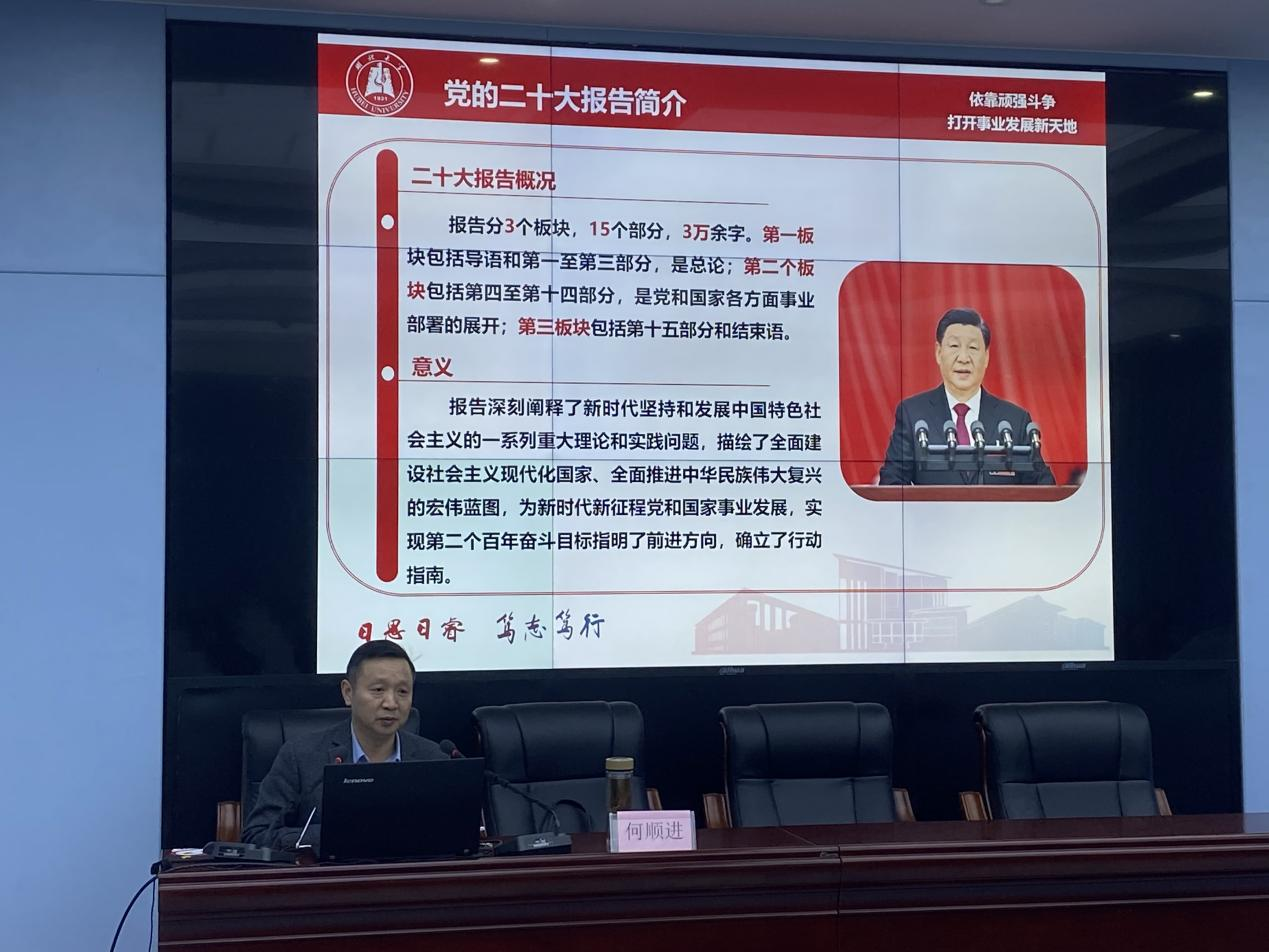 为深入学习党的二十大精神,3月16日下午,公司党委宣传部常务副部长何顺进以《依靠顽强斗争打开事业发展新天地》为题来院开展理论宣讲。全院教师参加学习,公司党委副书记鲁力格格主持宣讲会。