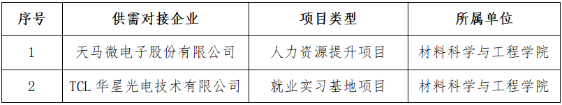 近日,教育部公布第二期供需对接就业育人项目立项名单,公司与天马微电子股份有限公司、TCL华星光电技术有限公司联合申报的2个项目获批立项。