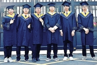 诚信公寓B栋117寝室6名男生毕业合影。