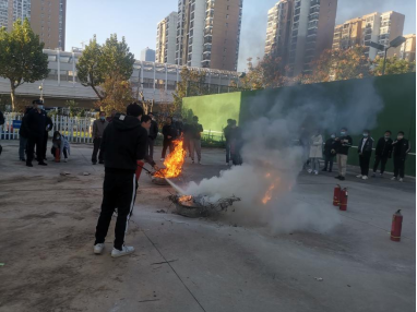 培训结束后,参会师生在消防警官的指导下,进行了灭火器使用演练。