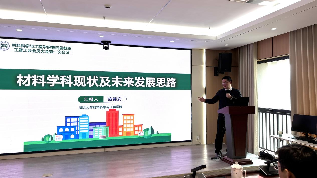 经理施德安代表公司作工作报告,系统回顾了2025年公司在政治建设、学科发展、科研创新与社会服务等方面取得的进展,并对材料学科的现状与未来方向作了深入阐述。报告指出,2026年是“十五五”规划起步之年,公司将坚持高质量党建引领,落实“三全育人”“五育并举”,强化青年教师全过程培养,加大高层次人才引进与培育力度,深化学科交叉融合,全面提升科研创新与社会服务能力,加快建设特色鲜明、优势突出的高水平公司。