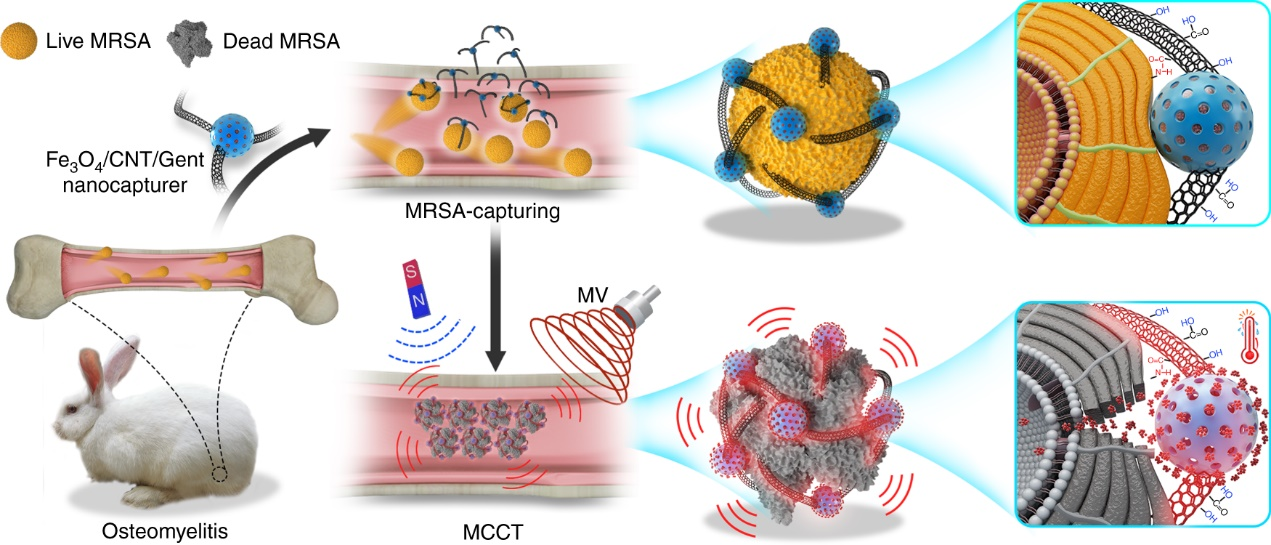 1.开发超声/微波响应纳米生物活性材料,利用超声/微波热和超声/微波动力治疗骨髓炎。