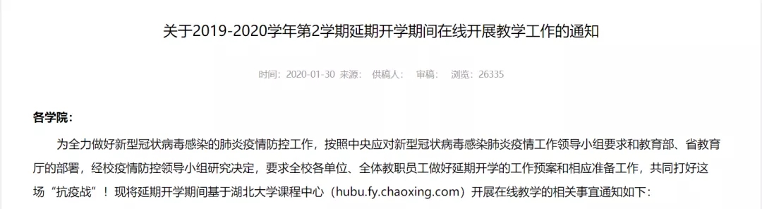 为全力做好新型冠状病毒感染的肺炎疫情防控工作,按照中央应对新型冠状病毒感染肺炎疫情工作领导小组要求和教育部、省教育厅的部署,经williamhill英国官网疫情防控领导小组研究决定,要求全校各单位、全体教职员工做好延期开学的工作预案和相应准备工作,共同打好这场“抗疫战”!