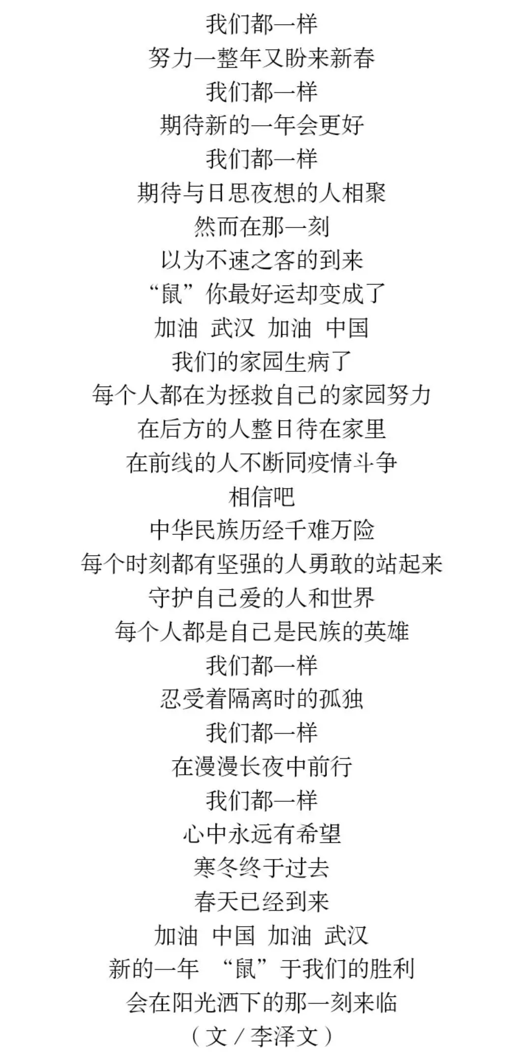 中华民族从来不是一个经不起风浪的民族,从古至今,越是风雨兼程,越是艰难险阻,我们越是迎难而上,不畏艰险。正是如此,我们才更应坚信,我们有信心,更有能力,打赢这场防疫攻坚战。武汉加油!中国加油!----廖慕白