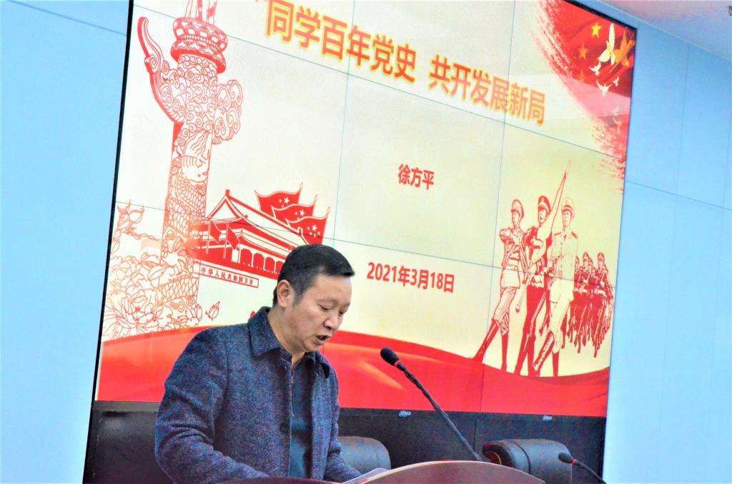 为庆祝中国共产党成立100周年,按照《​公司党史学习教育方案》,3月25日下午,公司党委邀请了徐方平教授在公司二楼报告厅进行《关于党史学习教育的几点思考》为主题的宣讲。会议由公司党委书记何顺进主持。